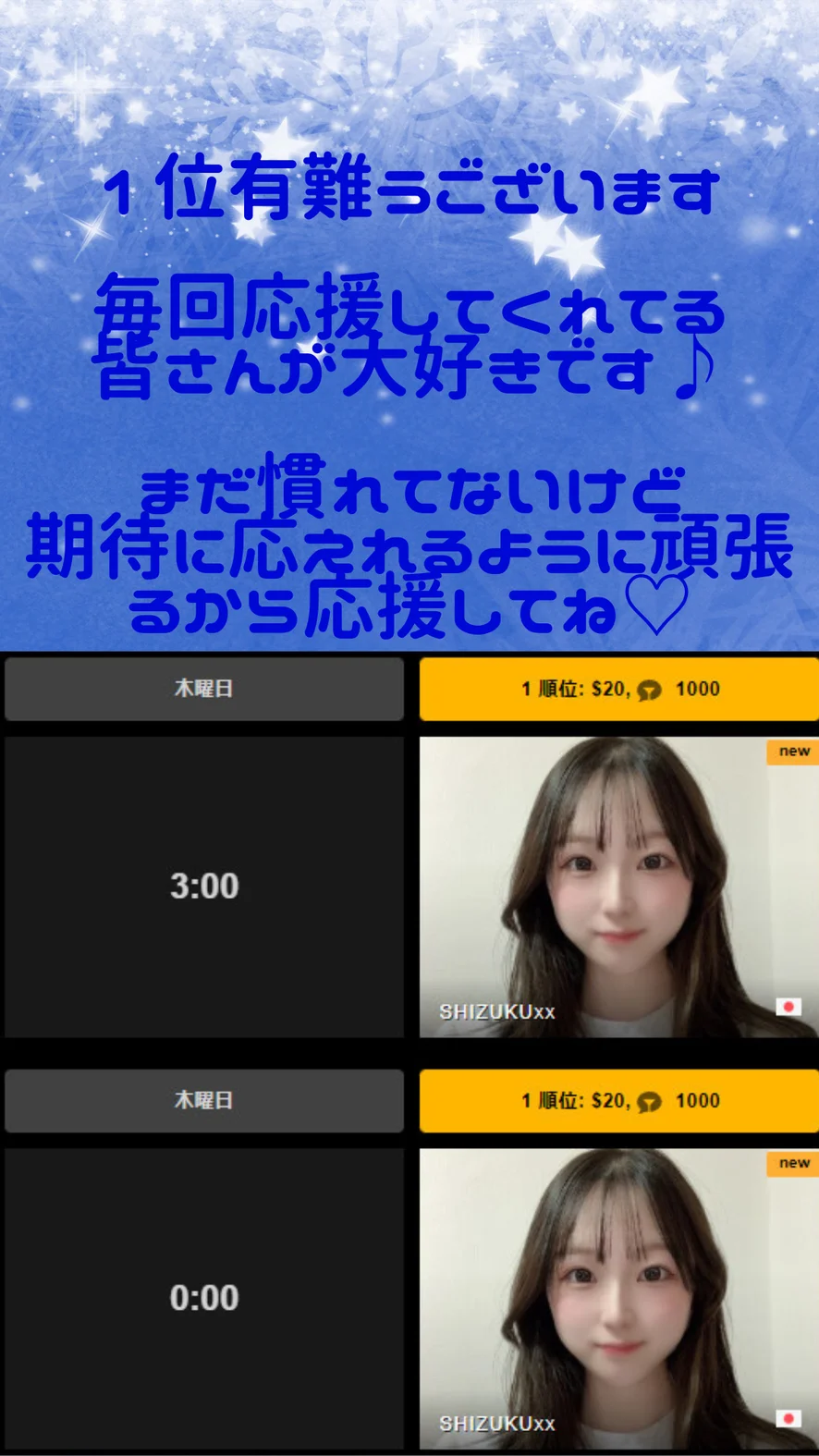みなさんの期待にこたえられるように、しずくのできる範囲で頑張りますので応援していただけたら嬉しいです♪